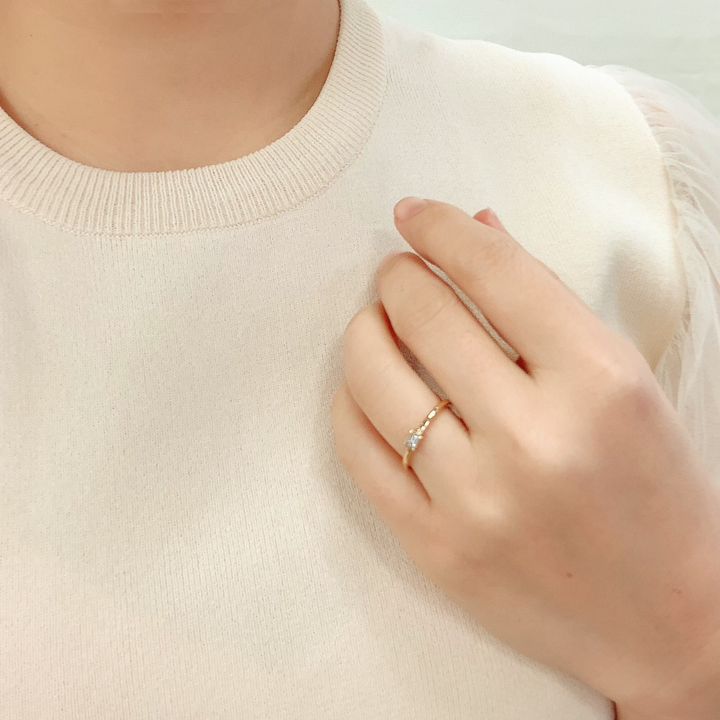 真っ直ぐで素直な輝きをいつもあなたの手に K18バケットダイヤモンドリング 0.18ct