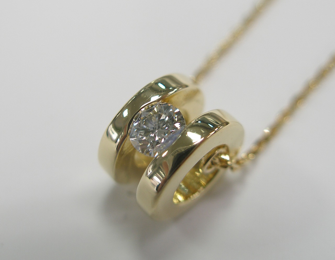 胸もとに、程よい存在感、セットしたダイヤモンドの輝きを左右から支えるゴールドのデザインは、あなたの女性性、男性性、そして繊細さと大胆さ、さらに強さと優しさ、という両側面をそのまま認め、愛し、活かしながら生きていくという、まっすぐな精神を表すデザインのジュエリーです。